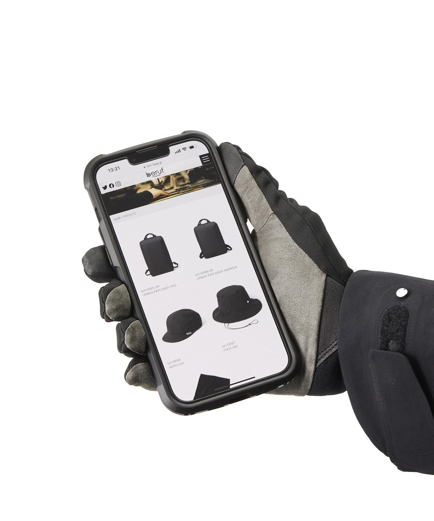- 親指と人差し指の先端にはタッチパネル操作対応の素材を採用(掌側)