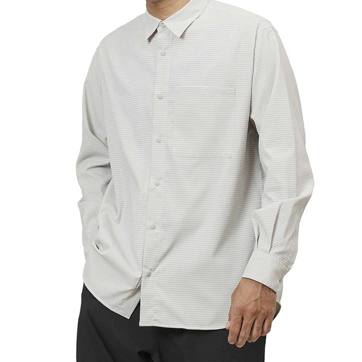 シンプルなシャツとして1枚で着ても様になるのはもちろん、ライトなアウターとしても、ジャケットとの重ね着にも使える万能な長袖シャツだからこそ、毎日着たくなる快適なシャツを目指しました。
